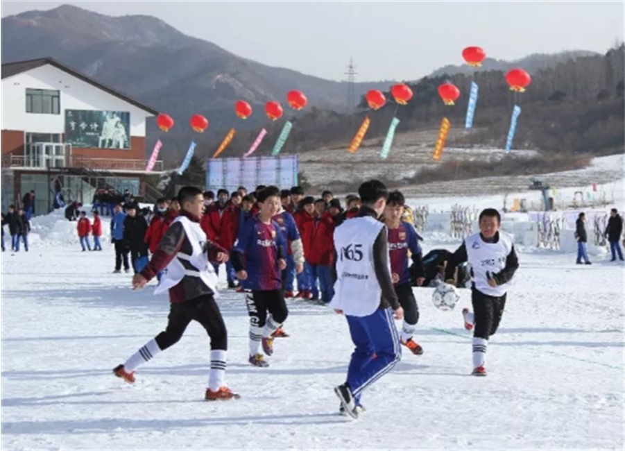 雪地足球激战正酣(央广网发 弓长岭区初级中学供图)