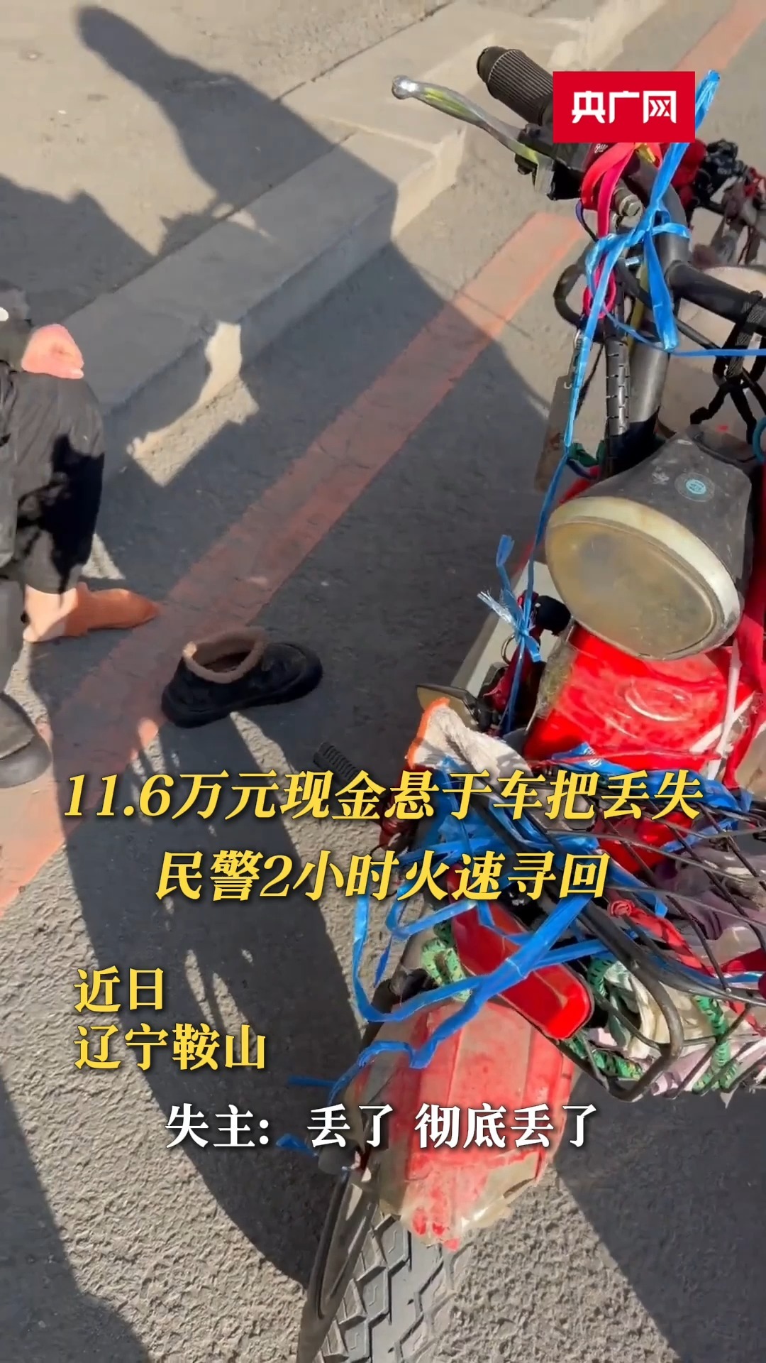 近日,辽宁鞍山一位老人将装有11.6万余元现金的塑料袋挂在车把上,却在骑行时不慎掉落,民警帮助老人把攒了3年多的钱找了回来。