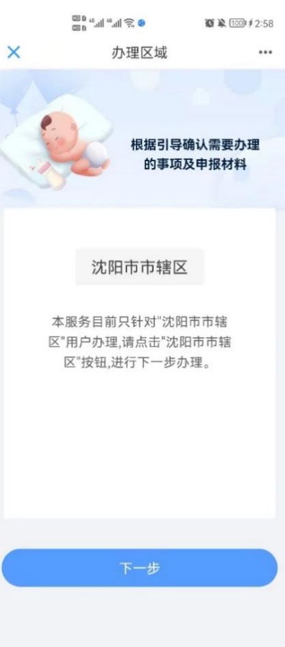 4)选择您所办理的区域,点击“沈阳市市辖区”进入下一步;