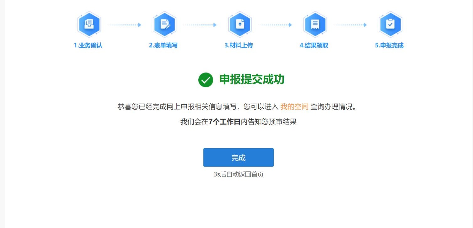 选择领取方式,申报提交成功即办理完成。