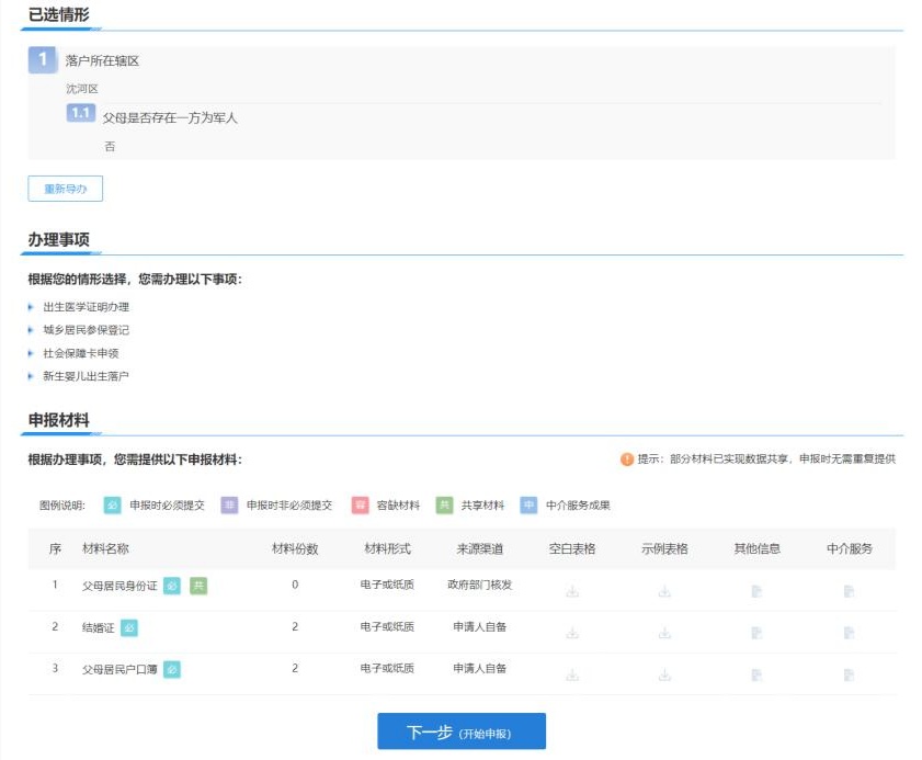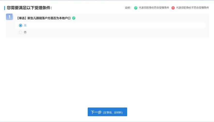 此外,依据办理指南要求,全程网办办理“新生儿一件事”限制条件还包括,新生儿为婚生子女,且已确定姓名;父母双方均为中华人民共和国居民,至少一人为本市户籍居民;父母双方民族一致;如落户农业户口,需线下办理。特别提醒,需新生儿籍贯与父亲籍贯保持一致,需要新生儿母亲本人办理。如不适用“新生儿一件事”情形,需分别进行单项申请的,可以前往医院窗口和派出所办理,不受以上受理条件限制。