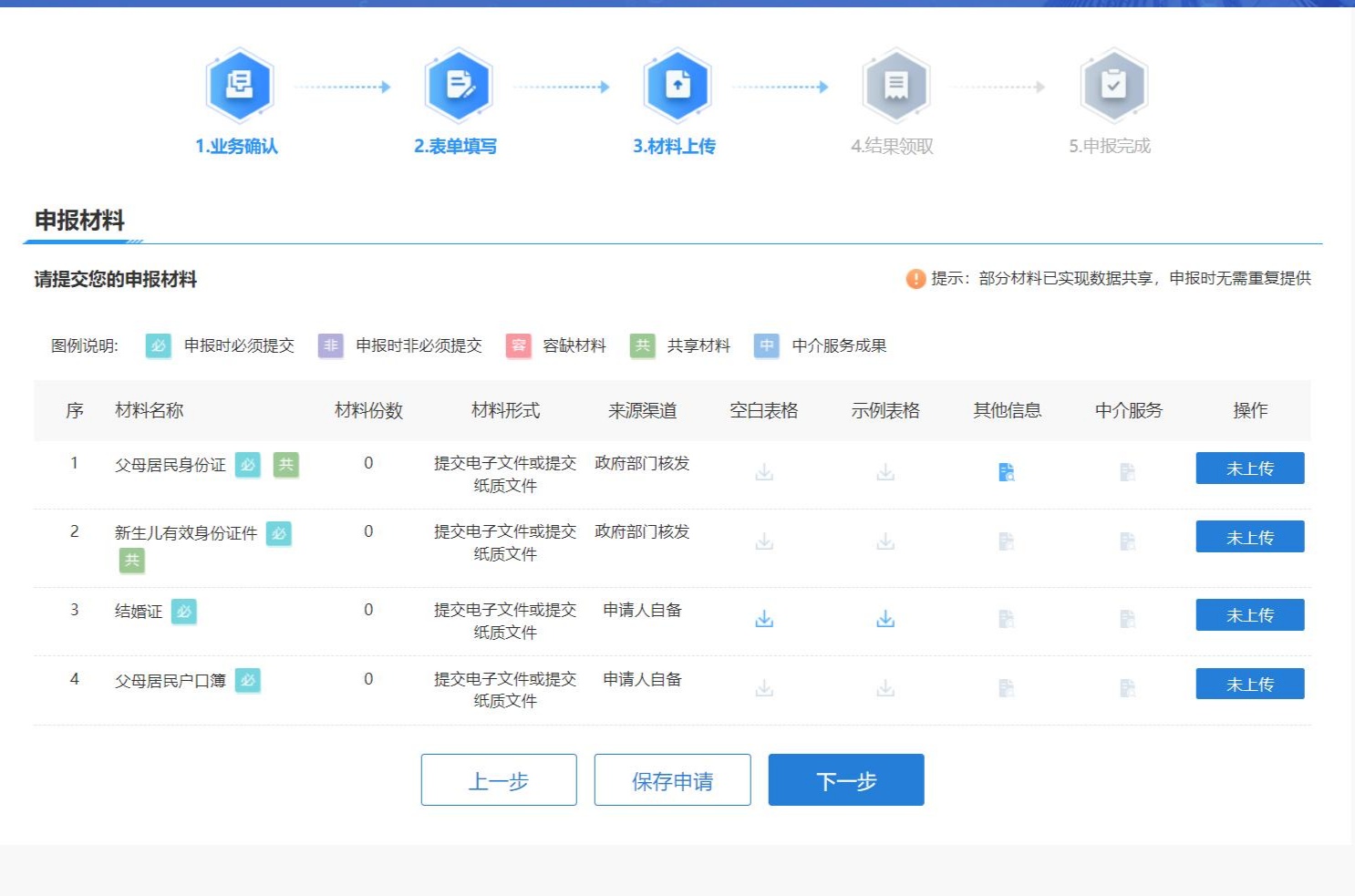 上传办理所需要材料;