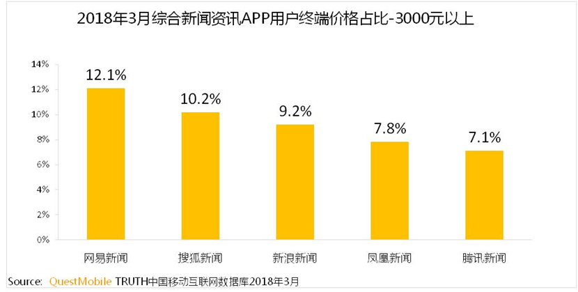 除了“人均单日使用时长”和“用户活跃率”两项数据之外,网易新闻在“综合新闻资讯APP用户使用终端价格占比”维度的数据也令人惊喜。据QuestMobile最新数据显示,“用户使用终端价格在3000元以上”这一类目,网易新闻用户占比第一,其用户群体拥有较强的消费实力,也从一个维度反映了网易新闻聚集着内容付费的优质潜力人群。