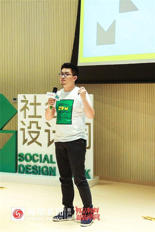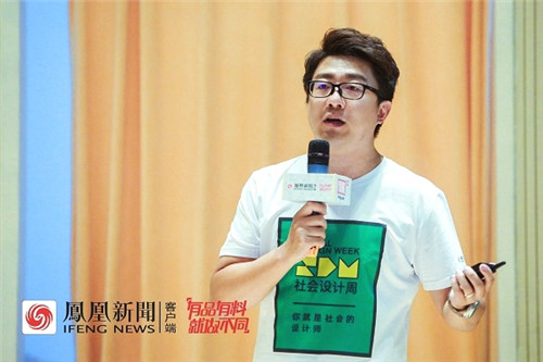 造点发起人程致远以“改造者联盟——社会设计的跨界协作”主题进行分享,他引用名家观点,倡议如果要解决类似气候变暖等社会难题,需要现在就建立一种互相理解、共同讨论,并为之行动的方式。同时,他从聪明的房间、司南Lab等案例入手,提出社会设计需要跨学科协同、跨主题协同,需要协调不同主体的参与动机,建立高效协作的机制。此外,他还与现场嘉宾分享了与永辉超市、中国慈善联合会、北京师范大学、联合国开发计划署、雀巢、地瓜社区、穷游等打造的一系列社会设计案例,提供了社会设计的个性化解决方案,在直面回应社会问题的同时,也给企业带来了可观的商业价值。他也期待与大家一道,共同参与到凤凰网社会设计周平台中,为社会可持续发展贡献一份心力。