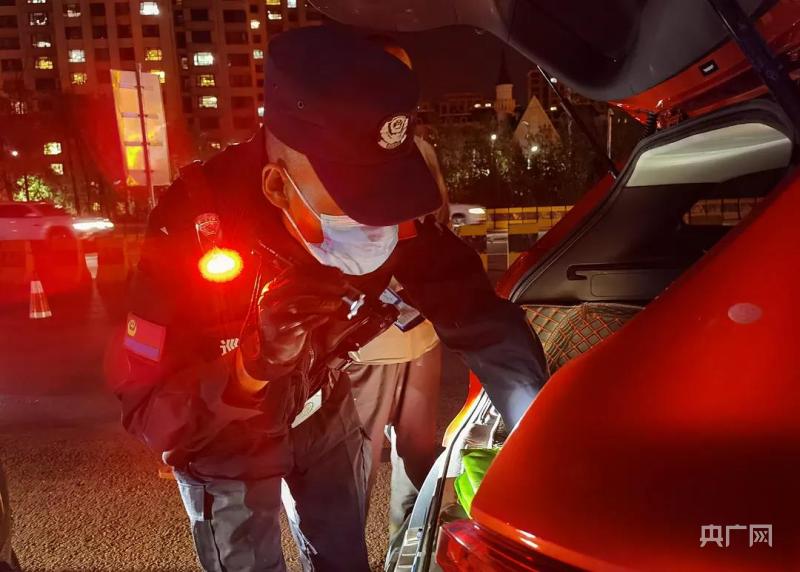 城西公安分局治安检查站民警正在对过往车辆后背箱存放物品进行检查。(央广网发 西宁公安供图)