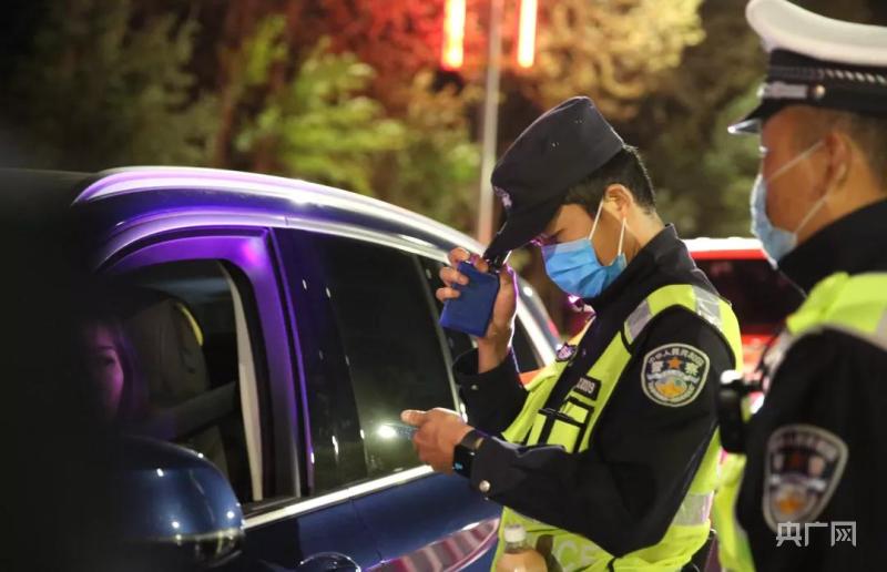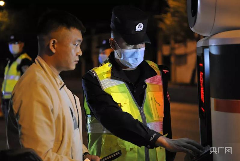 城北公安分局治安检查站民警对驾驶员持有行驶证、驾驶证进行身份核查。(央广网发 西宁公安供图)