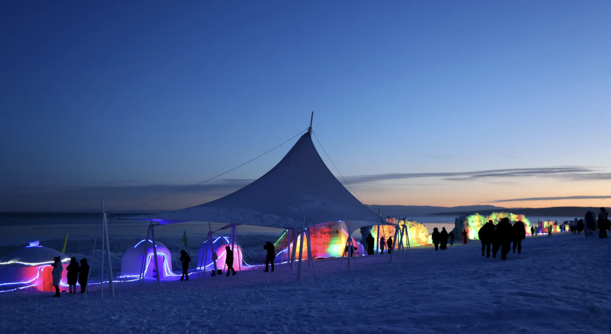 圣泉湾夜赏冰雕 青海湖畔共跨年——刚察2026冰雪跨年活动温情启幕