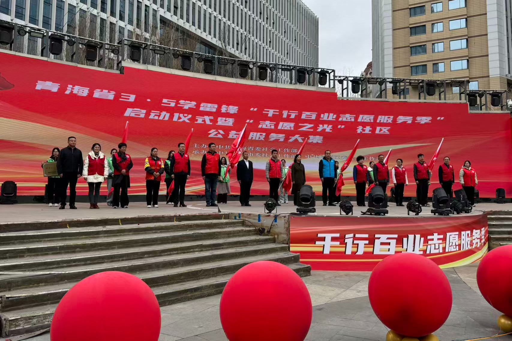 青海省学雷锋“千行百业志愿服务季”启动仪式暨“志愿之光”社区公益服务大集举行。