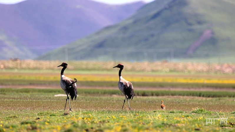 黑颈鹤宝宝湿地学步 黄河岸边“鹤”家欢