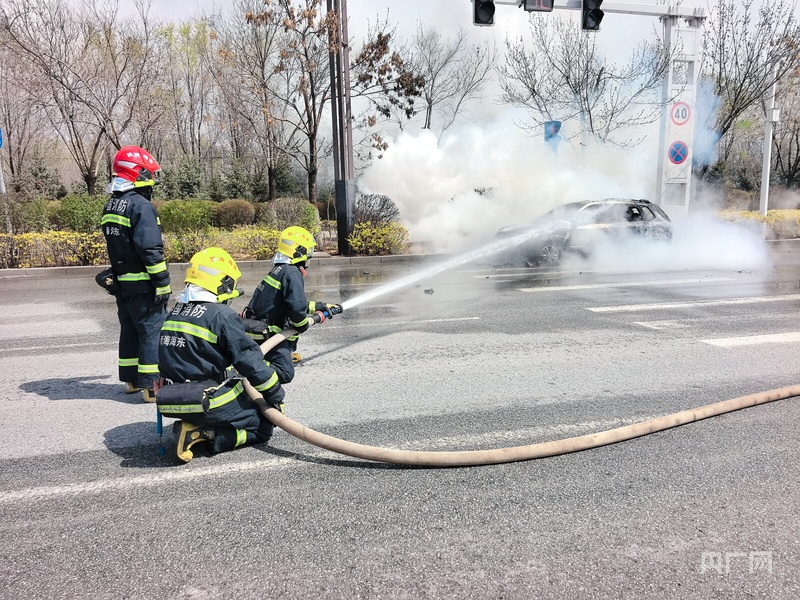 青海海东一轿车起火消防紧急处置 无人员伤亡