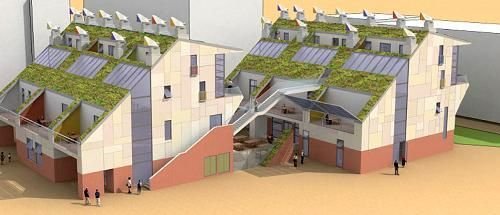 上海世博会零碳馆由两栋前后相连的四层楼建筑组成。两栋建筑外观一模一样,每栋房子的屋顶,各安装着11个五颜六色的风帽,跟随风向灵活转动。零碳馆总协调人陈硕告诉记者,上海世博会零碳馆是作为一个平台,把社会上更多节能减排的故事展示到世博会上,让每一个参与者都知道自己在衣食住行上面二氧化碳排放的信息。