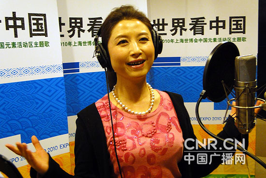中广网北京3月13日消息 3月12日,著名歌唱家刘媛媛现身北京乐家轩录音棚,参加了上海世博会“中国元素”大型文化活动主题歌《世界看中国》的录制。本首歌由王平久、舒楠分别词曲,再次集结了原奥组委《北京欢迎你》的制作团队而全力打造的一首献礼歌曲。与《北京欢迎你》不同的是,尽管也采取了群星合唱的方式,但这次邀请的全是当红的女民族和美声唱法的名家,除了刘媛媛外,还有张也、谭晶、么红、汤灿等人。独特的创意和强大的阵容势必再一次引领风尚潮流。