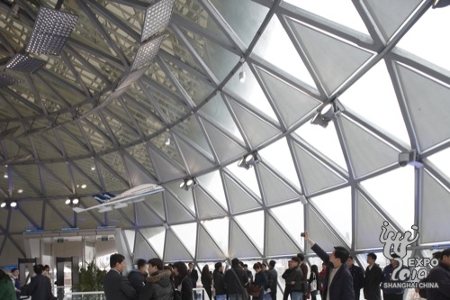据悉,中国航空馆沿着“白云”形状的外形周围还安装了水喷雾装置,白天通过喷雾给参观等候的游客降温,营造凉爽的参观环境,同时减少内部能耗。在夜晚,水喷雾效果与整个膜晶莹剔透的照明景观有机结合,能够营造出一种云雾缭绕的感觉,当游客看到飘浮玲珑的的航空馆,犹如置身仙境,会有一种飞翔的感觉。
