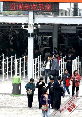 4月20日,参观者有序排队进入世博园内参观游览。新华社记者 陈飞摄