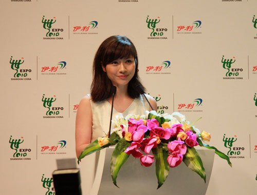 图文:伊利携手世博启动仪式 美女主持吉雪萍