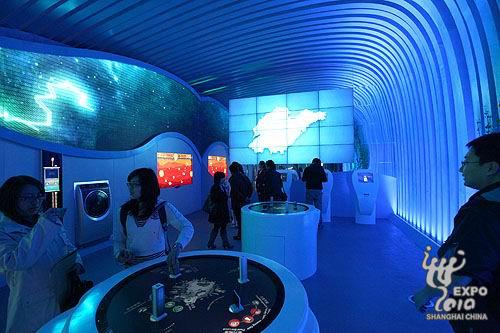 山东馆内部空间以“过去、现在、未来”的时间概念为基点,设计为序厅“城市智慧”,主展厅“城市家园”,尾厅“城市畅想”三个板块,让观众在宽松、愉悦的馆区环境中体验“登泰山观日,听圣贤教诲,到齐鲁人家做客”的真实情境。实现历史与现实对接,过去与未来对话,城市与乡村交融的展示效果。