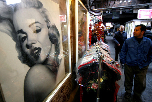 上海市泰康路田子坊老式弄堂里,私人画廊,手工作坊, 咖啡座,还有个性服装和家居小店随处吸引人们的眼球。
