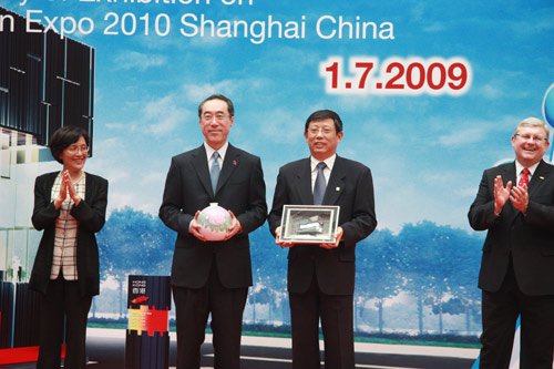 今天下午,香港参与中国2010年上海世博会专题展览在上海世博会展示中心开幕。香港特别行政区政务司司长唐英年、上海市常务副市长杨雄、上海世博会执委会专职副主任钟燕群等领导出席开幕式。(图片来源:腾讯世博)