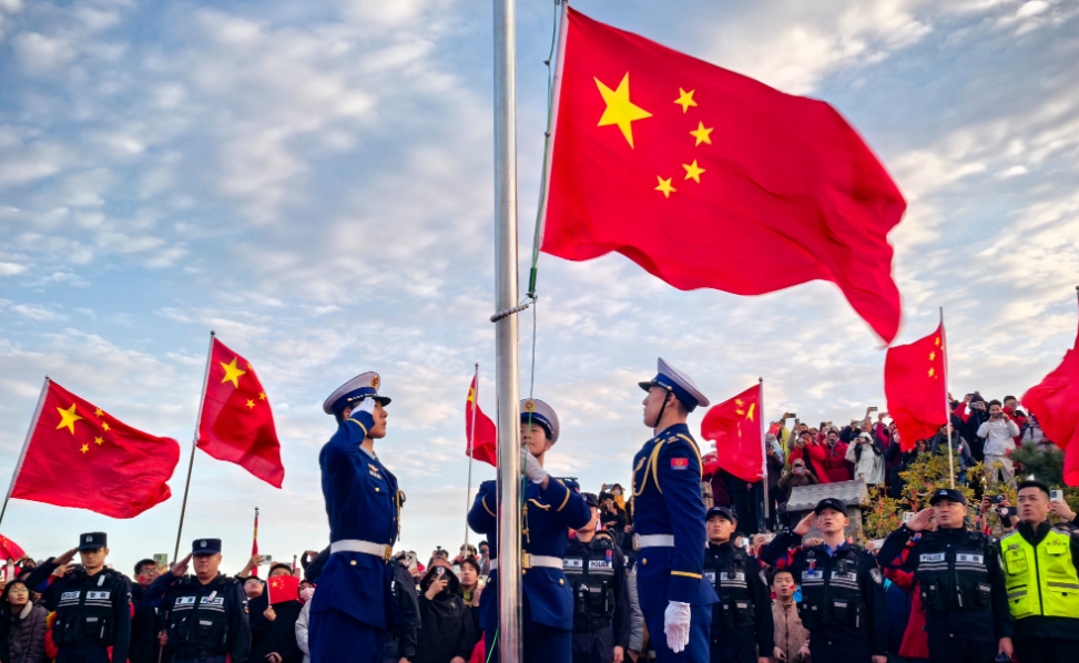 打卡“中国红” 泰山之巅飘扬“中国红”