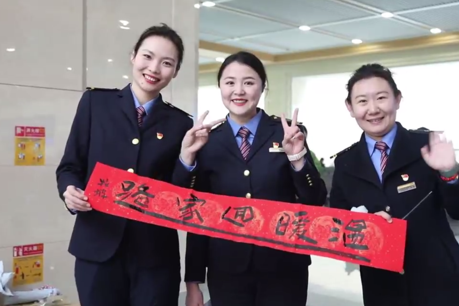 活动中,铁路工作人员为旅客送上新春的祝福和春联福字,传递新春美好祝愿,让旅客将满满的年味与祝福带回家。