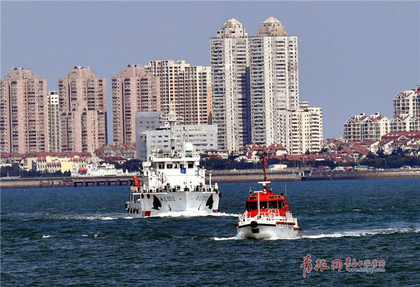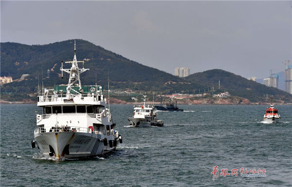 9月1日清晨,由中国海监4072、4073、4096,中国渔政37172,海巡05710、0512组成的联合执法编队从青岛市海洋与渔业行政执法支队码头出发,向大公岛方向行驶,对来往船只进行全面检查,督促其遵守海上航行及渔业生产有关法律法规。