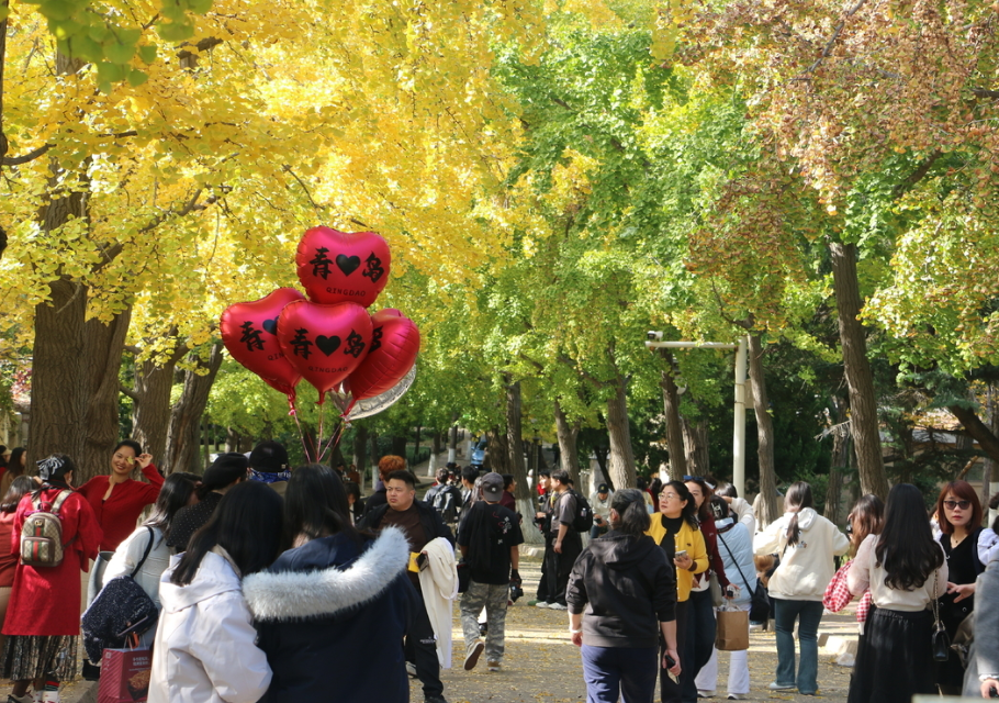 八大关里,梧桐染金、枫叶流丹、银杏铺黄,五彩斑斓的叶片在枝头摇曳,风一吹便簌簌落下,铺成满地诗意。