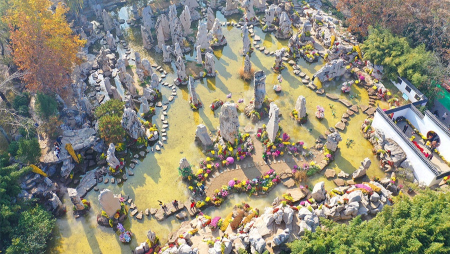 山东聊城:菊花遇上石林,令人陶醉