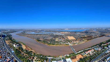 冷风吹拂下“泉城蓝”上线 俯瞰黄河济南段冬景如画