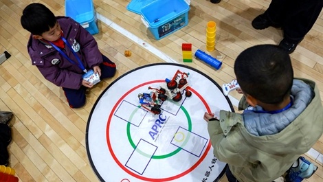 12月21日,山东省青岛市即墨区“英派斯杯”中小学生机器人大赛举行。