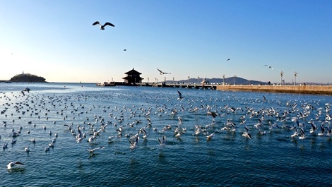 近年来,青岛持续加强生态环境保护,“人鸥和谐”已成为青岛冬季独具特色的城市风景线。