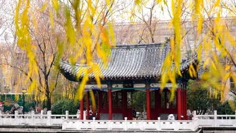 寒冬时节,济南珍珠泉以泉韵配金叶,勾勒出温润雅致的冬日图景,吸引市民游客寻幽赏景。