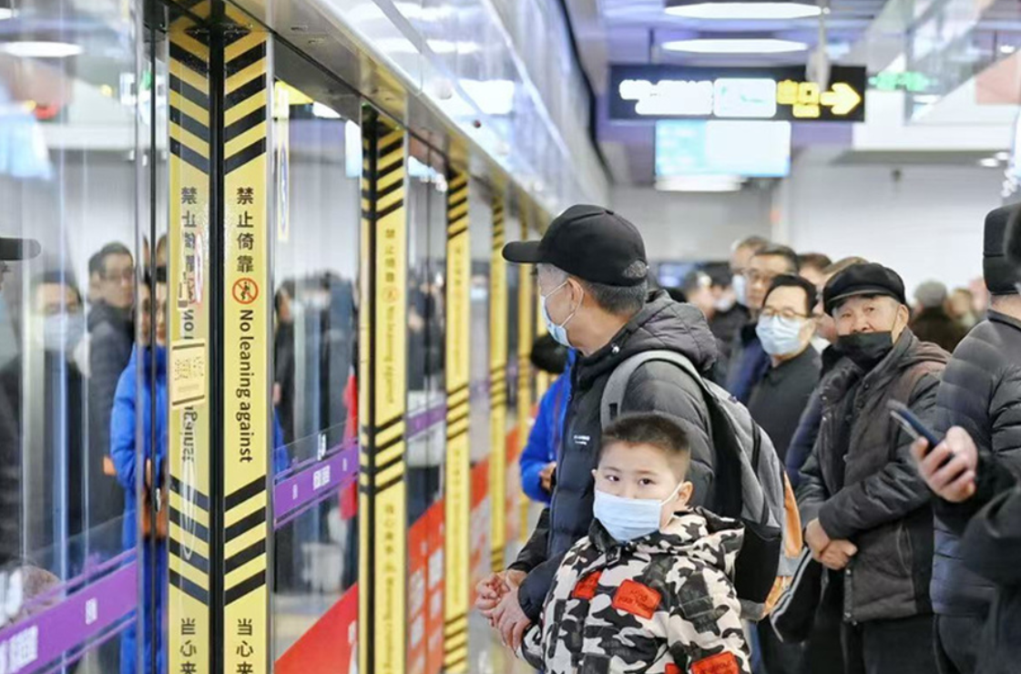 恰逢周末,不少家长与孩子赶到邢村立交桥东站,体验首发列车,感受地铁带来的便捷。