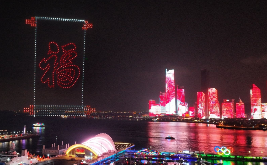 无人机点亮青岛夜空,共同迎接2026