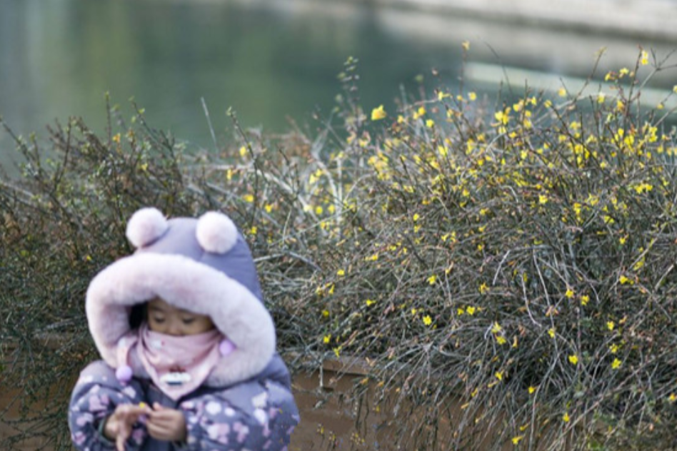 泉城冬日暖如春 护城河畔迎春花“错季”绽放