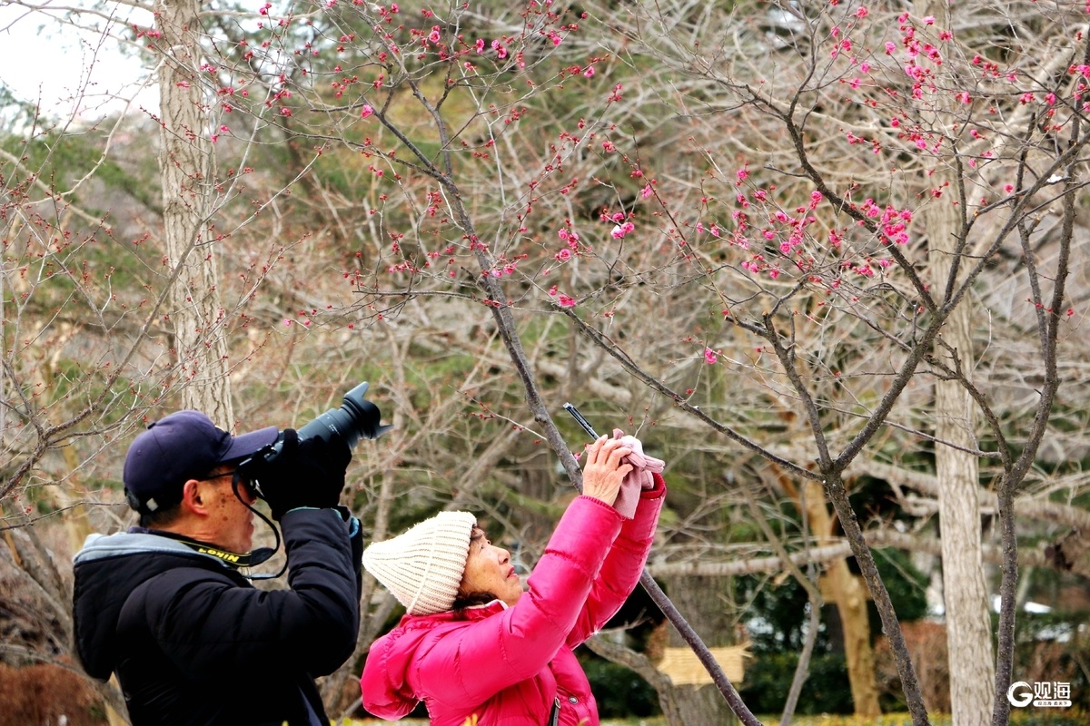 青岛寒意浸骨,中山公园的梅园却悄然酝酿着生机。