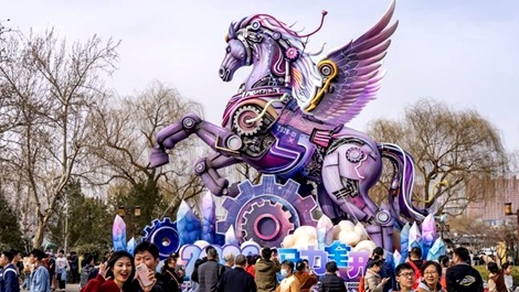 2月19日,五龙潭公园内花灯璀璨,传统工艺与现代光影交织,营造出“火树银花不夜天”的绚丽景象。