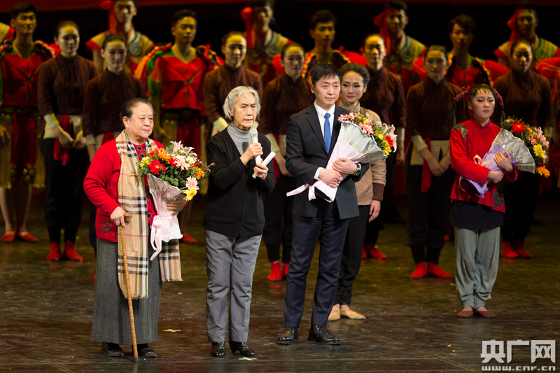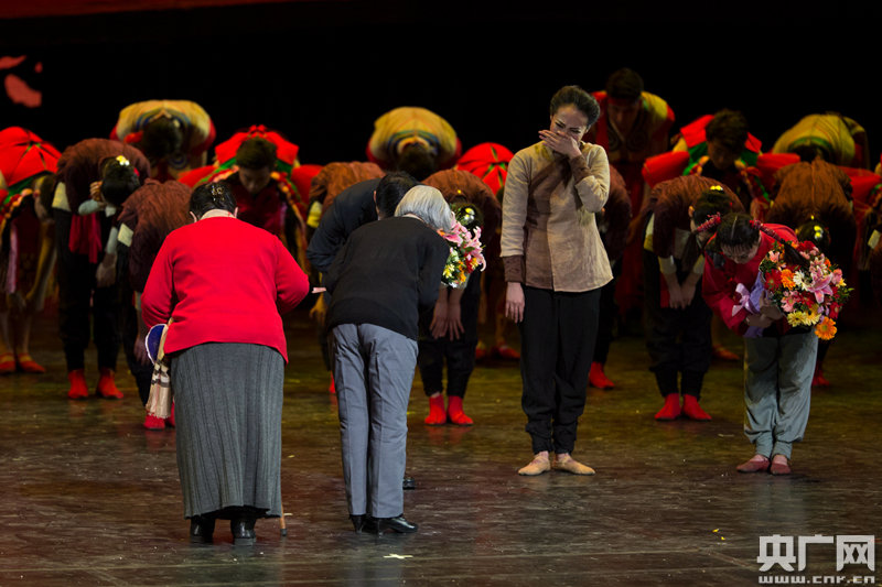 当于致荣和宋玉芳老人代表当年的乳儿给舞剧《乳娘》演员们鞠躬致谢,主演乳娘的演员已是泣不成声。