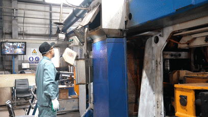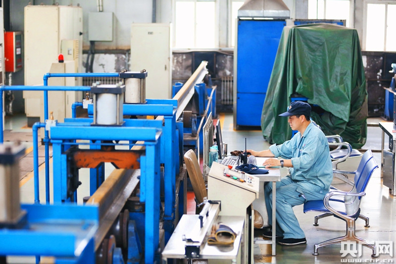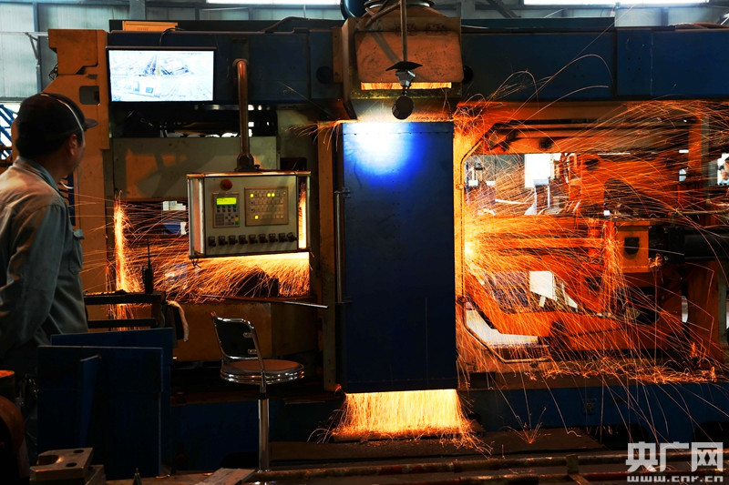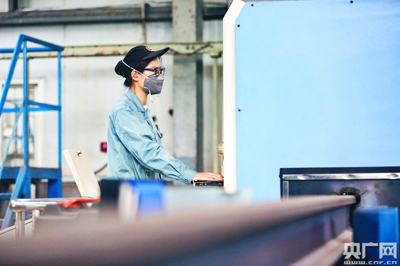 这个环节叫热处理,机器前的女生叫张哲,标准的“90”后。据她介绍,热处理环节就是利用加热器对钢轨的焊缝进行加热,使其温度迅速达到800度以上,加热完成后需要喷风降温,让钢轨硬化。或许有人会有疑问,先升温再降温,岂不是多此一举?对此,张哲打了一个形象的比喻,“这就好比一个上班族,在经过一段时间高强度的工作后,洗个热水澡就会放松。对钢轨加热就相当于给它洗了个热水澡,可以将钢轨中的一些压力释放出来,这样钢轨性能更加稳定。”