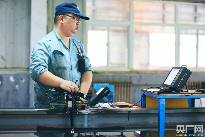外科“大夫”检查完了还需要内科“大夫”检查一遍,内科“大夫”的工作主要是运用超声波探伤仪,对接头的全身进行无损检测,通过超声波波形的变化进行判别,验证接头是不是有“病”,“病情”轻重如何。有“病”就开刀,把不达标的接头切掉,“无病”者给予健康证明,准许出厂。到这一步,一条焊接完成的钢轨就走完了所有的检测步骤,只等最终发往铺设现场。