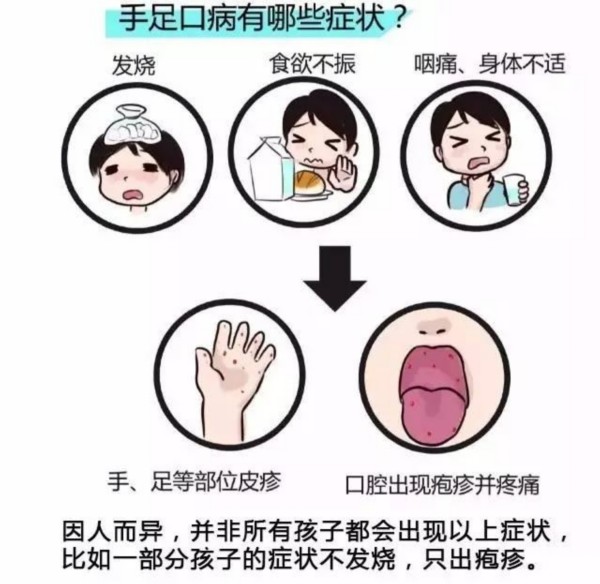 手足口病多发生于5岁以下的婴幼儿,可由多种肠道病毒引起,以肠道病毒EV71型和CA16型最为常见。每年5—7月份是流行高峰期,临床上以发热和手、足、口腔等部位的丘疱疹、溃疡为主要表现,少数患者可引起心肌炎、肺水肿、无菌性脑膜炎、脑干脑炎等致命性并发症。个别重症患儿病情发展快,可导致死亡。由于幼儿表达能力查,家长要学会早期识别重症病例的表现和特点,一旦发现手足口病患儿具有以下表现特征,有可能在短期内发展为危重病例,应立即到手足口病定点医院诊治: