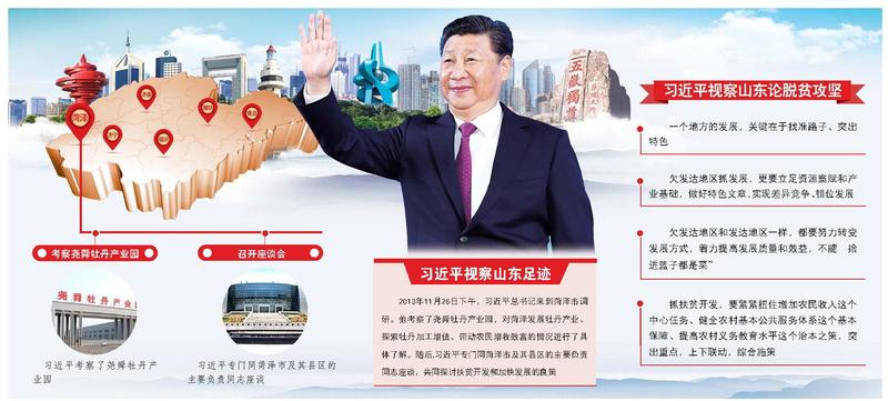 ◆2013年11月26日,习近平总书记来到经济欠发达的菏泽市调研,专门同菏泽市及县区主要负责同志座谈,共同探讨扶贫开发和加快发展的良策。2008年5月,习近平视察山东指出,关注民生、重视民生、保障民生、改善民生,是我们党搞革命、搞建设、搞改革的出发点和落脚点,是党的宗旨的根本要求,也是人民群众过上更好生活的热切期盼