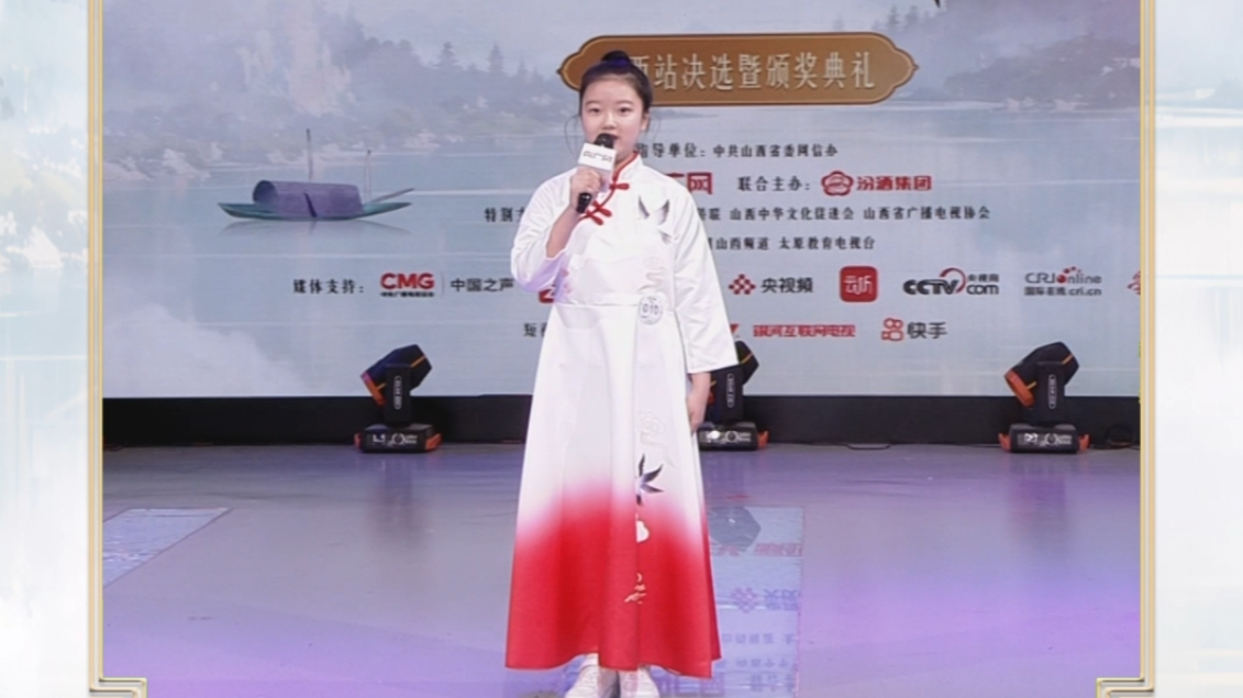 近日,中华经典诵读大会(第三季)山西站决选暨颁奖典礼在太原圆满落下帷幕。让我们再次领略中学组一等奖获奖选手冯蓦涵在总决选上带来的《丰碑》。
