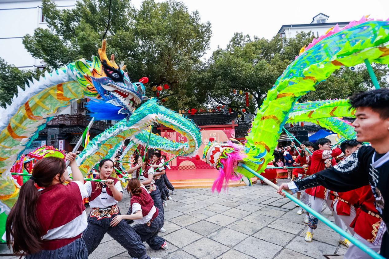 1月1日下午,奉贤青溪老街人头攒动,“品一碗人间烟火·贤城春晓”2026奉贤新年嘉年华活动在非遗炫彩《龙飞凤舞》中拉开帷幕。