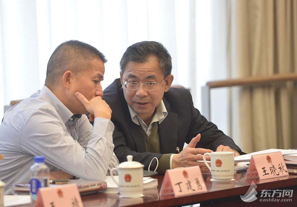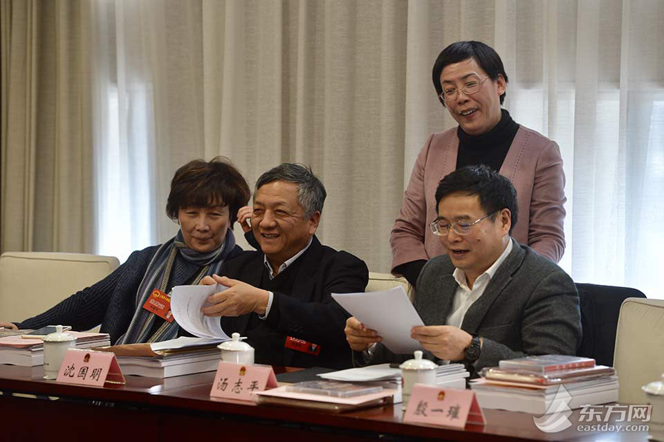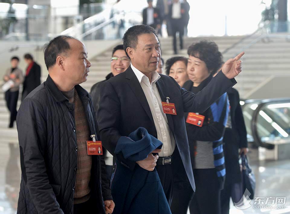 今天下午,上海市第十四届人民代表大会第五次会议在上海世博中心举行预备会议。会议开始前,来自全市各行各业的市人大代表就一年来的履职情况和今年关心的话题展开交流讨论。