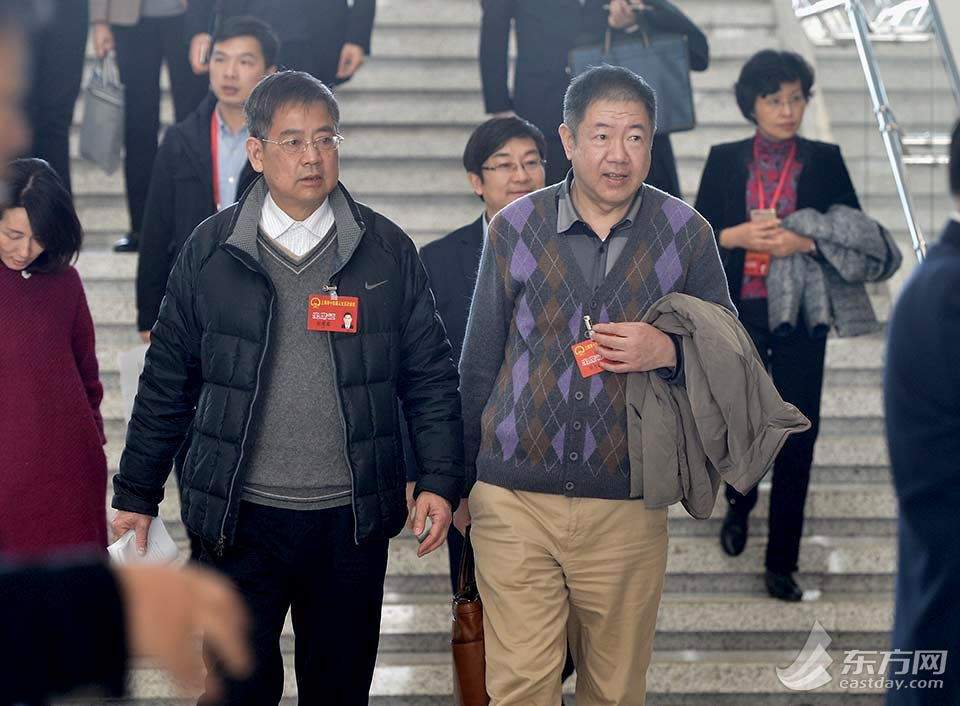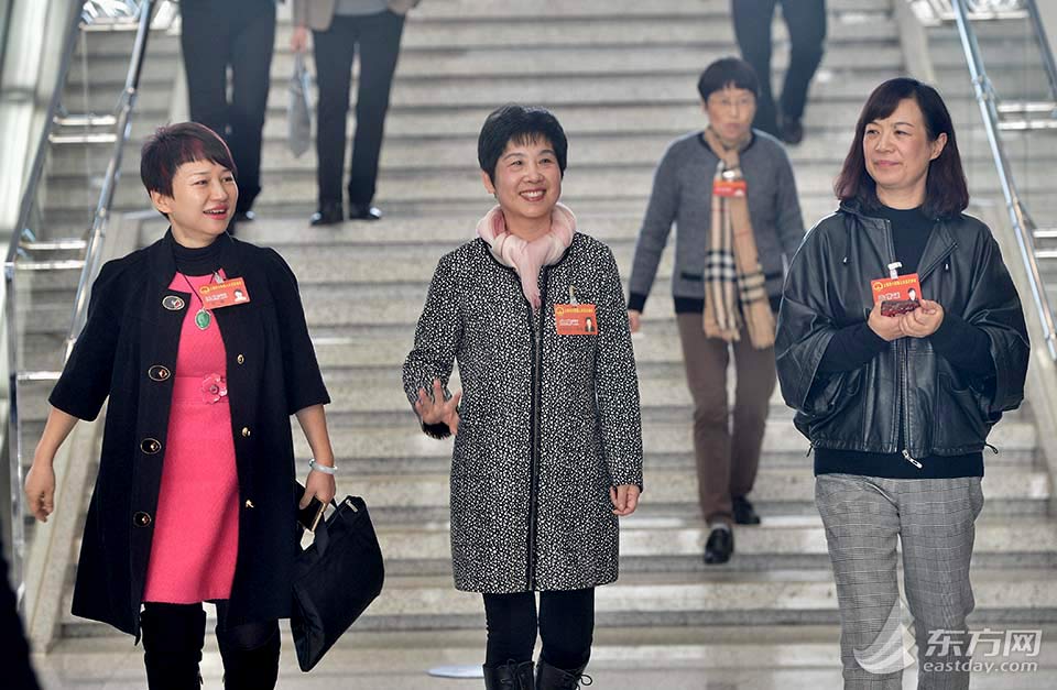 今天下午,上海市第十四届人民代表大会第五次会议在上海世博中心举行预备会议。会议开始前,来自全市各行各业的人大代表们边交流边步入会场。