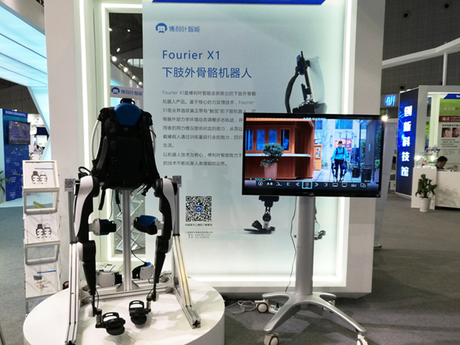 傅利叶智能工博会上展出的外骨骼机器人FourierX1