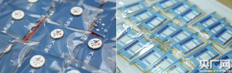 为校友专门定制的“东”字徽章及校门书签。(央广网发 华东理工大学 供图)