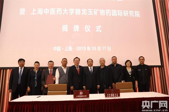央广网上海10月18日消息(记者傅闻捷 韩晓余)10月17日,上海中医药大学正式成立上海中医药大学磐龙玉矿物药国际研究院,成为全国首个中药矿物药国际研究院。研究院将在矿物药研究、成果转化、协同创新等方面展开国内外合作,共同推进玉石健康产业的发展,会议同时举行上海中医药大学与吉林省磐龙玉开发有限公司“发展战略性合作框架协议”正式签约仪式。
