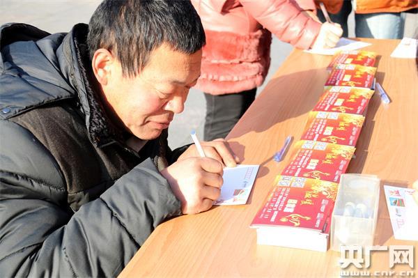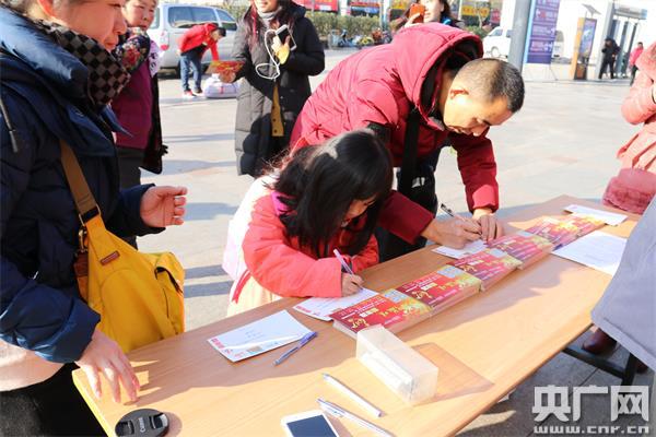 今天(23日)上午,中央人民广播电台中国之声、中国交通广播和东广新闻台联合直播的“2017年春运特别节目”《温暖回家路》,在上海火车站的南广场进行了现场直播。在直播现场,旅客也可以到直播车前,免费领取一张《春运特别直播明信片》,旅客可以把给亲人或者朋友的祝福留下,将会有专人替旅客免费邮寄。图为今天活动现场第一位参与者(央广网记者唐奇云 摄)