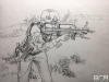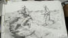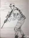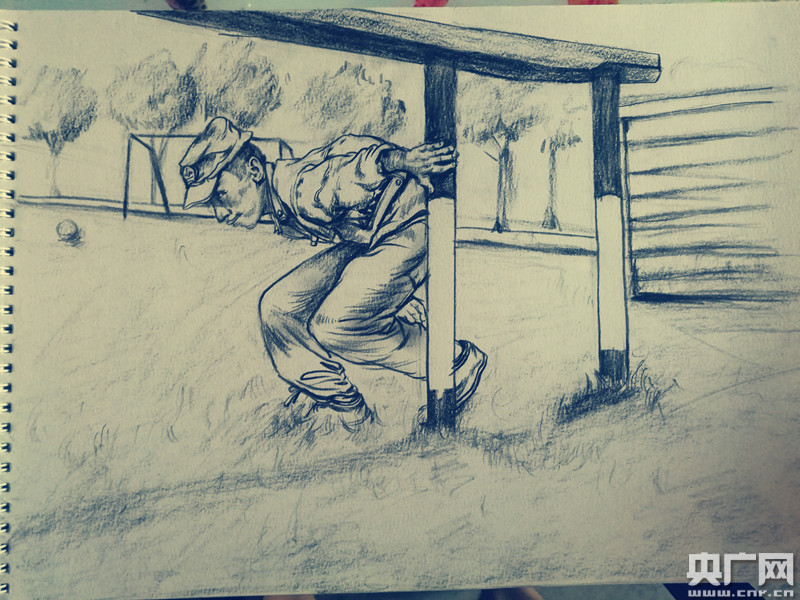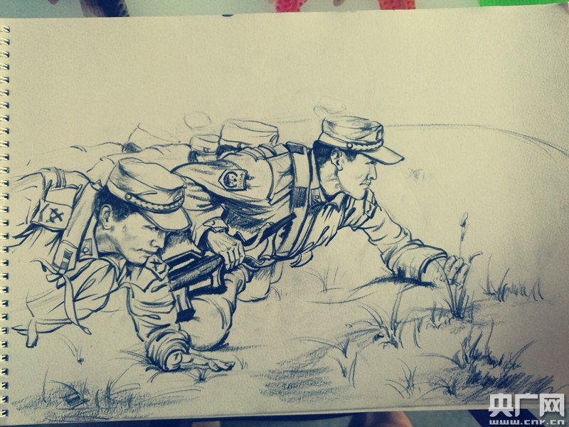 由于军队的特殊性,上海第二工业大学的同学们实地走访军营的时间是短暂的。有的训练场景先用相机拍摄,再进行后期的速写创作。更多的作品,是同学们查阅相关资料和图集后完成的。 -